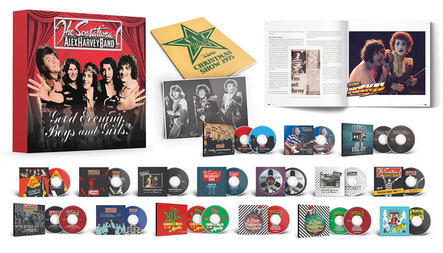 For all their idiosyncrasy, both in studio and onstage, THE SENSATIONAL ALEX HARVEY BAND were a fantastic proposition in front of audience – unreliable, in terms of any given performance’s quality, but fantastic nevertheless, and the Scottish ensemble’s followers, of which there are surprising multitude, never tire of collecting their recordings. It’s these fans, then, that a forthcoming box set is aimed at, with 21 discs spanning 1973-1977 and preserving for posterity no less than 16 concerts.