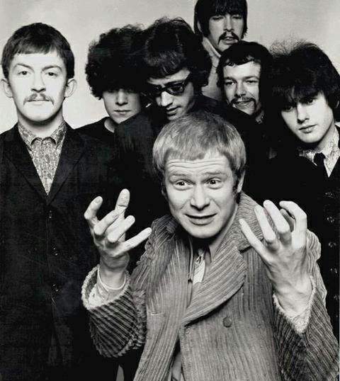 Elton Dean next to him, Marc Charig, first on the left, and Long John Baldry at the fore